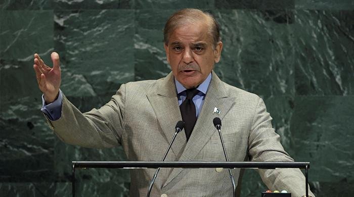 Prime Minister Shehbaz Sharif addresses the 80th United Nations General Assembly at UN headquarters in New York City, US, September 26, 2025. — Reuters
