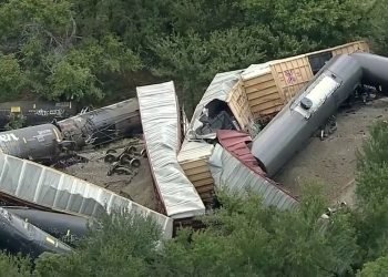 Union Pacific train derailment involving 35 cars occurred 2 miles east of Gordon, Texas on Monday with emergency crews containing a grass fire at the scene.