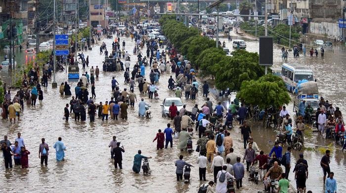People wade through a flooded road after the monsoon rain in Karachi, Pakistan, August 19, 2025. — Reuters Power supply remains suspended in several Karachi areas. Multiple domestic flights cancelled at Jinnah International. Sindh High Court shuts down amid…