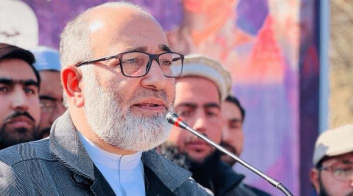 Former senator Mushtaq Ahmad Khan addresses an event. — Radio Pakistan