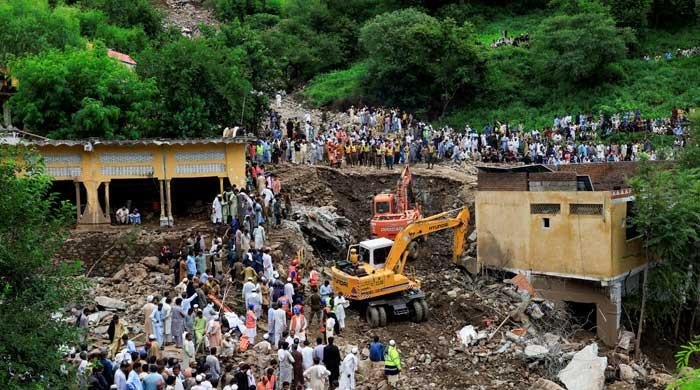 Residents gather as rescue workers look for victims, following a storm that caused heavy rains and flooding in Dalori Bala village in Gadoon district in Khyber Pakhtunkhwa province, Pakistan, August 19, 2025. — Reuters