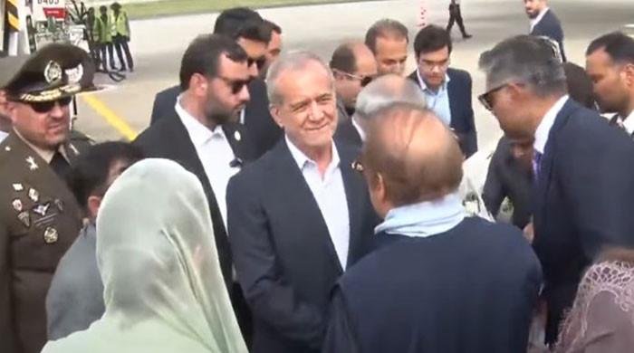 Iranian President Masoud Pezeshkian arrives at Allama Iqbal International Airport in Lahore, on August 2, 2025. — Geo News