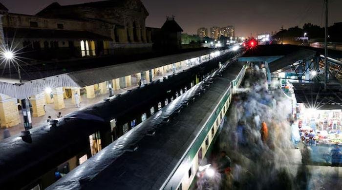 Passengers get on board a train at the Cantonment railway station in Karachi, on April 8, 2024.— Reuters