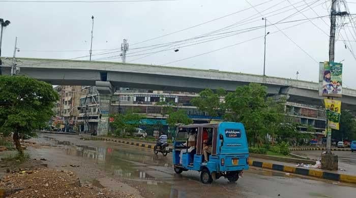 Vehicles pictured at Karachi’s Guru Mandir after early morning showers on September 10, 2025. — Geo.tv
