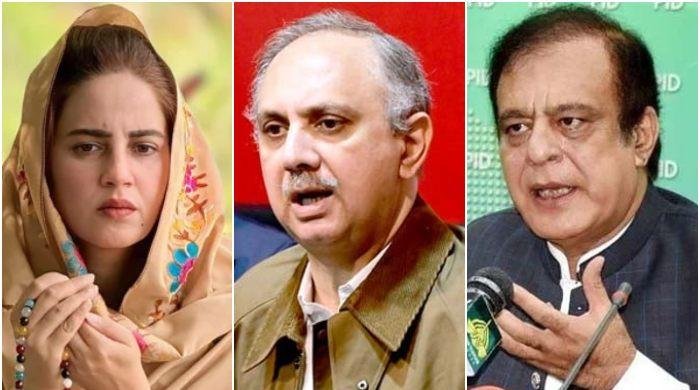 PTI leaders Zartaj Gul, Omar Ayub and Shibli Faraz. — X@zartajgulwazir/APP/File May 9 case was registered at Samanabad Police Station.59 accused handed 10-year sentence by Faisalabad ATC.Court also exonerates 34 out of total 109 accused in case.