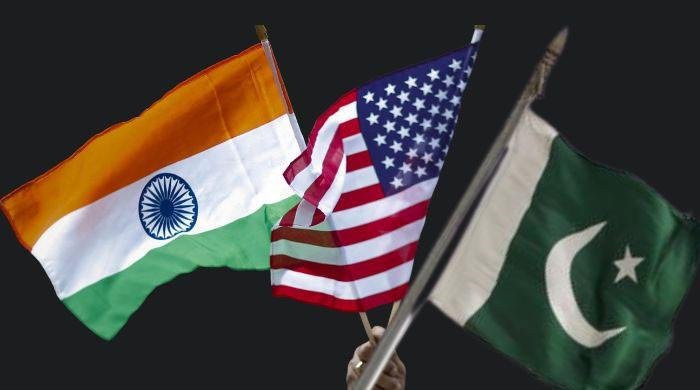 National flags of India, the United States, and Pakistan. — Reuters