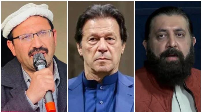Pakistan Tehreek-e-Insaf lawmaker Junaid Akbar , PTI founder Imran Khan , PTI spokesperson Sheikh Waqas Akram. — Facebook/AFP/@Junaid Akbar Khan/@PTIOfficial/File