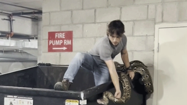 Reptile hunter climbs into apartment building dumpster to remove 16-foot python in Los Angeles