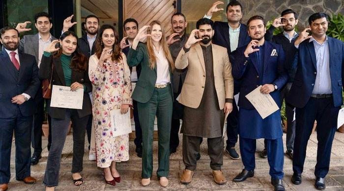 British High Commissioner to Pakistan, Jane Marriott, poses with Pakistani students at British High Commission in Islamabad. — X/@JaneMarriottUK