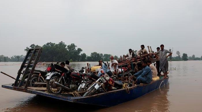 Residents travel with their belongings on a boat as they head towards higher ground, following the monsoon rains and rising water level of the Sutlej River, August 29, 2025.— Reuters